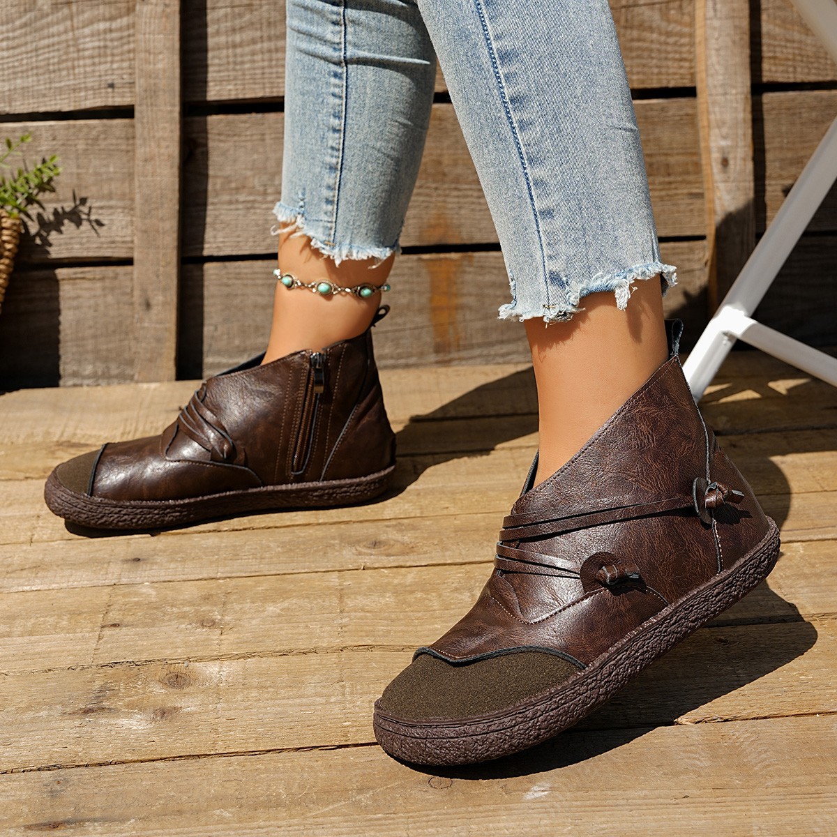 🔥Best Seller-Last Day Sale 60% OFF🔥 Winter Stitching Leather Short Boots